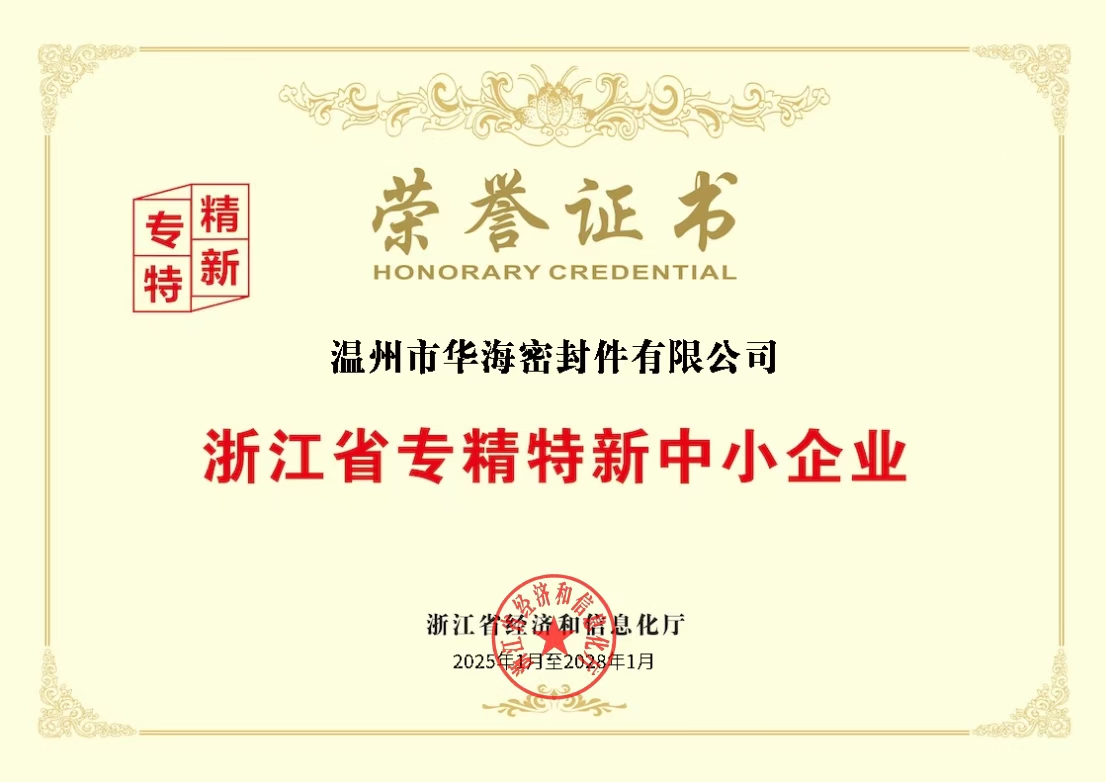 溫州市華海密封件有限公司獲得“浙江省專精特新中小企業(yè)”榮譽證書
