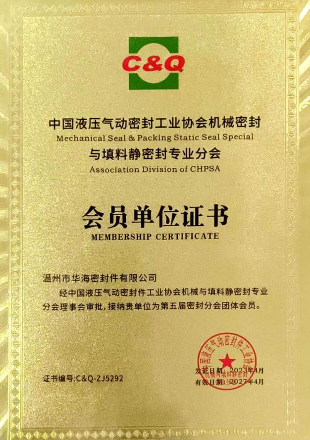 中國摩擦密封材料協(xié)會理事單位證書 中國液壓氣動密封件工業(yè)協(xié)會會員單位證書